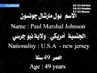 Пленку, зафиксировавшую 49-летнего инженера корпорации Lockheed Пола Маршала-Джонсона сидящим на стуле с завязанными глазами в профиль к камере, распространил один из сайтов исламистов. На ленте заложник называет вслух свое имя, уточняя, что является американцем.