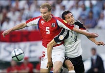 На 21 минуте матча счет великолепным ударом открыл немецкий полузащитник Баллак. Чехи отыгрались уже спустя 9 минут: не менее красиво забил Хайнц. А во втором тайме славяне вырвали победу - отличился Барош на 77 минуте.