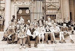 После 120-километрового марш-броска (вместо предполагавшихся 85 км) из Виттенберга 25 июля въехали в Берлин. После непродолжительных плутаний по окраине добрались до церкви, в которой планировался наш ночлег, и, оставив там велосипеды, поехали на метро в Домский собор. Клаус Эберль (он приехал поездом из Виттенберга) уже вёл службу, когда мы вошли в огромное здание храма в центре Берлина. Присутствовало около 300 человек. Приятно было увидеть фотографии Пскова, ЦЛП, детей, в центре немецкой столицы.