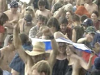 Несмотря на сильный град и холодный дождь, "Нашествие" продолжается. Народ не уходит.