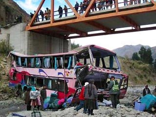 Автобус вез туристов от границы с Боливией на экскурсию в Куско, неподалеку от которого находится "потерянный город" империи инков - Мачу-Пикчу, когда водитель потерял управление на мосту, в результате чего автобус съехал с обрыва к реке. В полиции не исключили, что водитель мог заснуть за рулем, сообщает Reuters.
