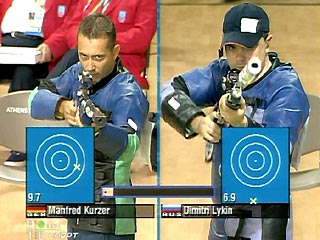 Россияне Дмитрий Лыкин и Александр Блинов завоевали медали соревнований по пулевой стрельбе из пневматической винтовки по движущимся мишеням с 10 метров на Играх в Афинах.