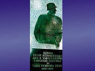 В 2002 году этот памятник был установлен в городе Пярну, но через девять дней решением городских властей был демонтирован. Тогда на памятнике был выбит текст: "Всем эстонским солдатам, которые погибли во II Освободительной войне за Родину и Свободную Европу в 1940-1945 годах".