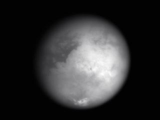 Первые снимки Титана были сделаны космическим аппаратом Voyager-1 в 1980 году. На снимках была видна лишь туманная оранжевая атмосфера с голубоватым оттенком на горизонте.