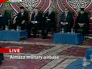 В столице Египта Каире, куда в ночь на пятницу французский самолет доставил тело умершего Ясира Арафата, завершилась церемония прощания с усопшим. Гроб с телом лидера ПА вначале был накануне доставлен в мечеть Аль-Гала, откуда и началась в 11:00 по московскому времени церемония прощания. Поминальную молитву прочел шейх крупнейшего мусульманского университета Аль-Азхар Мухаммед Сейед Тантауи, и гроб Арафата на артиллерийском лафете двинулся по улице в направлении аэродрома. Военнослужащие роты почетного караула сопровождали открытый катафалк.