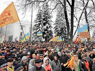 Выступая со сцены на площади Независимости, руководитель акции оппозиции, депутат Юрий Луценко призвал граждан не брать штурмом правительственное и парламентское здания.