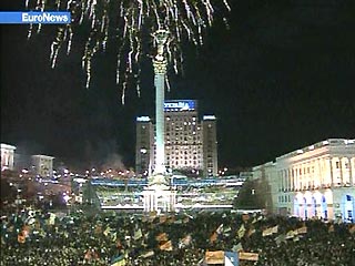 "С днем великой победы", - поздравил Ющенко своих сторонников, которых собралось более 30 тысяч человек.