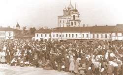 На Торговой площади войска гитлеровской Германии также устраивали свои парады. В мае 1943 г. генерал Андрей Власов принимал здесь парад частей Русской Освободительной Армии, состоявшей в основном из пленных красноармейцев, перешедших на сторону немцев. В феврале 1944 г., в результате адской бомбардировки Пскова советской авиацией, а затем и от рук немцев погибли почти все здания, окружавшие центральную площадь.