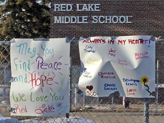 Трагедия произошла в небольшом городе Ред Лейк, на территории индейской резервации. Сначала подросток застрелил своих дедушку и бабушку. Затем отправился в школу, где убил еще семь человек, после чего застрелился. 15 человек получили тогда ранения. Среди погибших двое мальчиков, один из которых, как предполагается, и является убийцей, а также две девочки, учитель и школьный сторож.