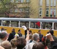 И тут подъехал автобус с солдатами-срочниками, одетыми в форму постовых патрульной службы. Они встали между бывшими пикетчиками и загородкой.