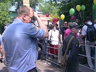 Улица перед зданием суда перегорожена, асфальт разворочен. Сторонников Ходорковского держат на значительном расстоянии от зала суда. Причина: "на улице ведутся строительные работы", которые, по словам стоящего в оцеплении милиционера, "давно запланированы". "Только никто не работает, во всяком случае днем. Рабочие на строительных машинах дремлют и занимаются тем же, чем и участники процесса в душном зале суда: они ждут".