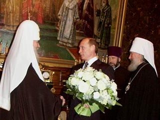 Президент России Владимир Путин поздравил Патриарха Алексия II с 15-й годовщиной интронизации, вручил ему подарок и сказал, что государство еще в долгу перед Церковью.