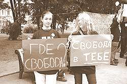 По данным милиции, на митинг пришли около тысячи человек. Митингующие скандировали «Свободу Ходорковскому!» и «Раз-два-три - Путин, уходи!» Участники акции держали плакаты с надписями «Уважайте конституцию!», «Да свободным выборам!», «Да свободным СМИ!» На последнем плакате перечислены СМИ, которые участники митинга считают свободными: «Эхо Москвы», «Коммерсант», «Ведомости», «Новая газета», RTVi, Грани.Ру.