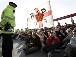 Троим сыновьям нового хозяина "Манчестер Юнайтед" Малкольма Глейзера, которые впервые посетили "Олд Траффорд" после смены владельца клуба, болельщики манкунианцев устроили более чем прохладный прием. Им пришлось спешно покинуть территорию спорткомплекса в полицейских автобусах, так как около 300 фанатов высказывали свое разочарование продажей клуба, скандируя перед стадионом "Умри, Глейзер, умри".