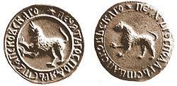 В интервале времени между 1415 и 1424 годами происходит ряд событий, связанных с реформой государственного устройства Псковской республики. В эти годы принимается новая редакция правового кодекса Пскова – Псковской Судной грамоты. В эти же годы проводятся капитальные строительные работы по переустройству архитектурно-градостроительного комплекса псковского веча. Наконец, в эти годы происходят реорганизация административного управления в республике – сокращается срок пребывания избранного посадника в должности. Очевидно, что изобразительному символу «глава человечья», знаменовавшему своим появлением начало реформ республиканского управления, придавалось первостепенное значение Иная судьба у изображения «лютого зверя». Изображение четвероногого появляется на псковской монете в 1468 г. в качестве второго изображения. Вначале псковские монеты с двумя изображениями чеканилась по традиционной весовой норме. Однако начиная с 1490-х годов Псков переходит к чеканке монеты, ориентированной на московскую денежную систему. Очевидно, что установление в Пскове денежной системы по образцу московской свидетельствует в пользу установления экономического контроля со стороны Москвы не только над покоренным в 1478 г. Новгородом, но и над сохранявшим формальную независимость Псковом. Изобразительным же символом экономической подконтрольности Пскова Москве оказывается именно «лютый зверь».