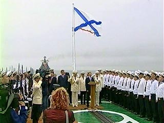 С торжественного подъема государственного и Андреевского флагов на кораблях начались праздничные мероприятия на Северном флоте. В военно-морском параде приняли участие авианосец "Адмирал Кузнецов", тяжелый атомный ракетный крейсер "Петр Великий", атомные подводные лодки стратегического назначения, а также корабли всех других классов, стоящие на вооружении этого флота.