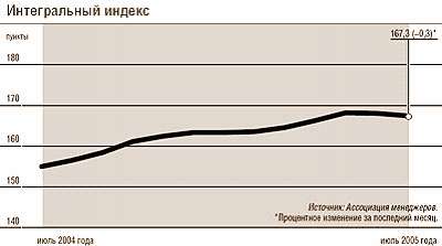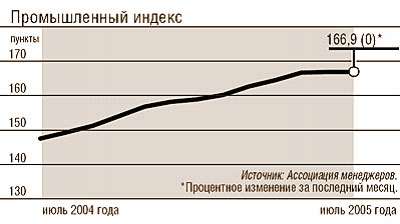 Промышленный индекс в июле практически не изменился. Рекордно низкие темпы промышленного роста в мае (на уровне 1,4% к маю предыдущего года) оставили такой неприятный осадок, что даже полное восстановление промышленного роста в июне (6,9% к июню предыдущего года) не смогло улучшить настроение бизнесменов.