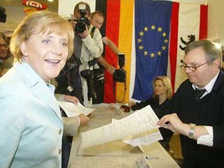 Как передает спецкорр RTVi из штаба Ангелы Меркель, она уже выступила перед своими сторонниками и объявила себя будущим канцлером Германии. Это означает, что были проведены блиц-переговоры с представителями других партий о возможной коалиции, и эти переговоры оказались успешными. Источник RTVi в штабе Меркель также подтвердил, что она будет новым главой страны. Но с кем достигнута договоренность - неизвестно. Речь может идти об альянсе с партией Шредера или, что менее вероятно, о союзе с "зелеными".