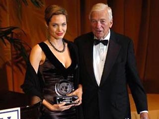 Известная актриса Анджелина Джоли получила награду за свою гуманитарную работу как посол доброй воли Комитета по делам беженцев Организации Объединенных Наций. На торжественной церемонии вручения награды присутствовали 700 дипломатов и VIP-гостей.