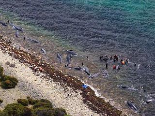 Между тем, в среду на побережье Тасмании выбросились еще 80 китов. Большинству из выбросившихся на берег животных, своим общительным характером напоминающих дельфинов, не успели оказать помощь спасатели и добровольцы.