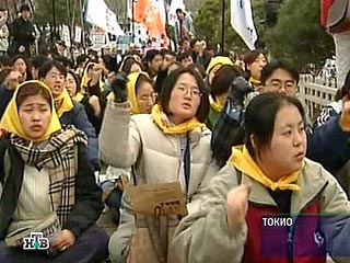 В воскресенье утром эти же люди устроили митинг около российского посольства в Токио, заблокировав улицу, на которой оно расположено. В целях безопасности полиция была вынуждена поставить прямо у выезда из посольства свой автобус.