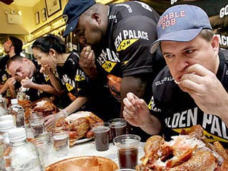 37-летняя Соня Томас из города Александрия (штат Вирджиния), которая весит всего 47,5 кг, одержала верх над семью соперниками-мужчинами на ежегодном конкурсе Thanksgiving Invitational. Она управилась с 4,5-килограммовой жареной индейкой всего за 12 минут.