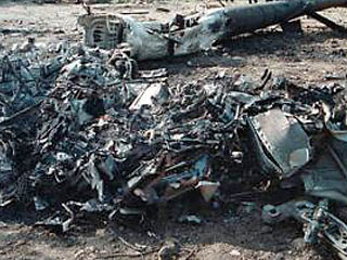 "Визуальный осмотр свидетельствует о том, что вертолет обгорел и взорвался", - сказал представитель РОВД. Он сообщил также, что бортовой номер боевой машины не найден. Также пока неизвестно, в какое время и при каких обстоятельствах вертолет рухнул.