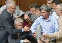 В связи с тем, что трибуна парламента была заблокирована представителями пропрезидентских партий, спикер парламента объявил перерыв в работе Рады.