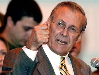 "Но те, кто следует этим курсом, должен задаться вопросом: а что, если он ошибается? Что, если в данный момент враг как раз и рассчитывает на то, что его будут недооценивать, вообще не принимать всерьез, думает, что мы не найдем времени им заняться?", - вопрошает Рамсфельд.