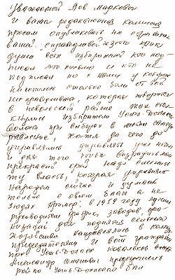 Уважаемый Лев Маркович и ваша редакционная комиссия, просим вас опубликовать на страницах вашей справедливой газеты крик души всех избирателей, кто подписал это письмо и кто не подписал, но с нами, у которых накопилось столько боли от той несправедливости, которая творится в Невельском районе.
