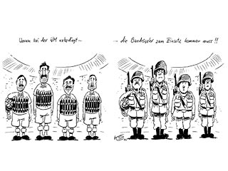 Газета опубликовала рисунок, на котором иранские футболисты изображены с поясами террористов-смертников. Рядом с ними стоят немецкие солдаты, а над рисунком расположен заголовок: "Почему немецкая армия должна быть использована во время Чемпионата мира по футболу-2006?"