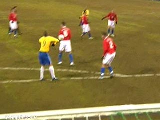 После пропущенного гола наши футболисты оживились и создали несколько довольно опасных моментов на дальних подступах к воротам Рожерио, однако в завершающей стадии были традиционно неточны. Бразильцы ответили прицельными ударами Адриано и Роналдо, которые эффектно парировал наш голкипер.