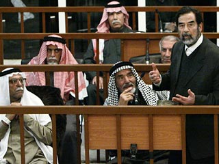 Как и на предыдущем заседании, состоявшемся во вторник, в среду суд заслушал свидетельства обвинения. Один из главных обвинителей Джаафар аль-Мусауи представил дополнительные документы, среди которых, по его словам, есть факты, подтверждающие причастность обвиняемых к расправам над населением шиитской деревни Эд-Дуджейль к северу от Багдада.
