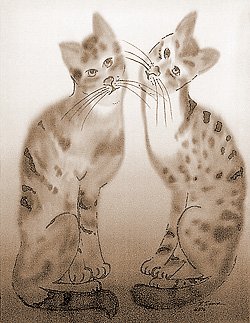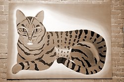 О работах Галины Годиной уже доводилось писать прошлым летом [ 1 ]. Стоит ли повторяться, говоря о творчестве этой художницы: о редкой технике (роспись по шёлку), в которой она работает, об исключительном формальном совершенстве этих произведений, о мудром и тонком сочетании искусства и ремесла в самом благородном и почтенном смысле этих слов. Всё выше– и преждесказанное, несомненно, относится к «кошачьей» (на ней представлены портреты шести кошек, живущих у художницы) выставке, открывшейся на масленой неделе в галерее на Герцена, 6.