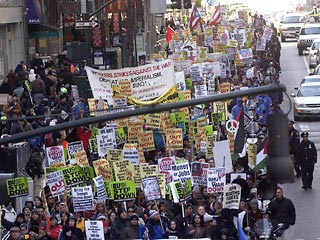 "Мы хотим положить конец этой безумной войне и начать тратить деньги там, где это необходимо, например, на помощь людям, пострадавшим от урагана "Катрина", - заявил Марсиал Гуэрра, представитель коалиции A.N.S.W.E.R - организатора акции. - Деньги надо расходовать на нужды людей, а не на военную машину".