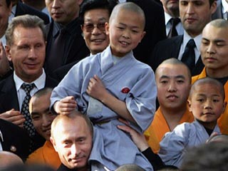 Глава российского государства сфотографировался тогда с группой мастеров ушу, а самого маленького из участников показательных выступлений, восьмилетнего Ши, даже посадил себе на плечо.