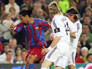 Счет открыл Роналдиньо, реализовавший пенальти, назначенный за то, что Роберто Карлос в штрафной снес Марка ван Боммеля. Спустя минуту защитник "королевского клуба" был удален за разговоры с судьей: видимо, Роберто Карлос в горячечной манере, свойственной бразильцам, пытался доказать, что арбитр не прав.