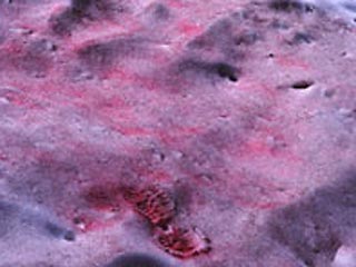 Столь непривычный цвет объясняется продуктами жизнедеятельности распространенных там одноклеточных водорослей под названием Сhlamydomonas nivalis ("хламидомонада снежная", в ее клетках содержится красный пигмент астаксантин - прим. NEWSru.com). Аборигены еще называют их "арбузный снег", так как по вкусу они очень похожи на эту ягоду.