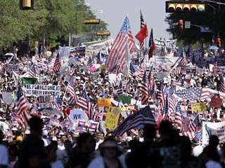 Манифестанты выражали возмущение тем, что сенат конгресса США проголосовал в минувшую пятницу против того, чтобы рассматривать законопроект об иммиграции без внесения в него каких-либо поправок. Это по сути означает отказ конгресса нынешнего созыва одобрить документ, касающийся пребывания в стране нелегальных иммигрантов, которых, по разным оценкам, насчитывается от 11 до 12 млн, передает ИТАР-ТАСС.