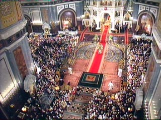 В главном православном соборе России – храме Христа Спасителя, за полчаса до полуночи началось пасхальное богослужение. Его возглавил Патриарх Московский и всея Руси Алексий II.