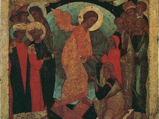 По преданию, в Субботу, когда ученики Иисуса скорбели о постигшем их горе и своей великой утрате, еще не явившийся в земном мире Спаситель сошел в ад, где ожидая Его пришествия, томились души всех умерших, даже ветхозаветных праведников. Христос, прошедший через Крестные страдания, освободил души праведных и в Великую Субботу извел их из ада. Этому событию посвящены сюжеты многих русских икон, именуемых "Воскресение - Сошествие во ад".