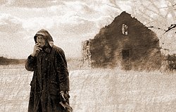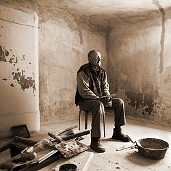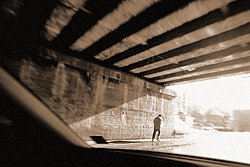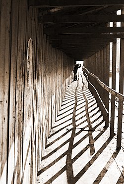 Работа, давшая название всему циклу, представляет собой изображение деревянного тротуара под крышей - такого, которые городят у нас вдоль заборов, ограждающих стройки. Резкие тени расчертили его на чёткие сегменты. Вдали, у выхода – мужик в шляпе.
