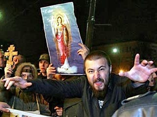 Ближе к вечеру, как сообщает "Эхо Москвы", на акцию протеста возле клуба собрались десятки агрессивно настроенных людей. По данным радиостанции, молодые люди с повязками на лицах и пожилые женщины с православными иконами в руках скандировали гомофобные и христианские лозунги.