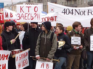 Первоначально предполагалось, что "монстранты" по договоренности с Ассоциацией молодежных профсоюзов вольются в их колонну и вместе с участниками "серьезного" шествия пройдут до площади Ленина, где проводится традиционный митинг. Однако милиция не дала участникам акции пристроиться к колонне профсоюзов и коммунистов, в итоге молодежь обходными путями добралась от Дома Офицеров до площади Ленина, где в тот момент уже проходил митинг с участием сторонников КПРФ, "Родины" и других политических партий.