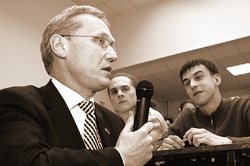Сергей Марков в своей вступительной речи хоть и не применял к студентам новейшие педтехнологии, зато был гораздо более провокационен и красноречив. Он не просто общался с аудиторией – он митинговал. «Переступите через наследие холодной войны!» - призывал он соседей по ликвидированному президиуму, словно наследие лежало где-то рядом и молило о переступлении.
