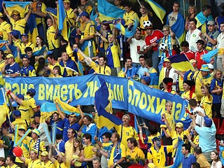 Украинцы ликовали, когда Украина выиграла у Швейцарии со счетом 3:0 в серии послематчевых пенальти. Той ночью они разъезжали на украшенных флагами машинах по Крещатику в центре Киева и кричали "Оле-оле", скандируя под эти звуки название своей страны. Все было так же, как и везде, включая и тот печальный факт, что полиция должна была задержать некоторых слишком уж активных болельщиков.