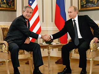 На встрече в Стрельне перед саммитом G8 Путин и Буш "сверяют часы"