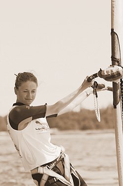 Правда, серфингистам опять не повезло. С Псковского на Чудское озеро фестиваль переехал как раз ради ветра, но погода подшутила над «Псковским циклоном». В четверг шторм помешал яхтам «Псковской регаты» добраться до Залахтовья, в пятницу серфингисты с удовольствием катались по волнам, примериваясь к субботним соревнованиям, но в субботу и воскресенье – официальные дни соревнований – стоял почти полный штиль! Объявили фан-гонку, результаты которой не попадают в зачет кубка России. Выиграла ее девушка – двадцатилетняя Татьяна Журавлева из Санкт-Петербурга обошла всех серьезных дядек с чемпионскими титулами.