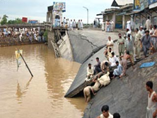 Инцидент произошел в городе Мардан, где несколько сотен местных жителей собрались на мосту посмотреть на переполненную в связи с проливными дождями реку. Старый мост не выдержал нагрузки и частично обрушился в воду вместе с людьми и несколькими автомашинами.