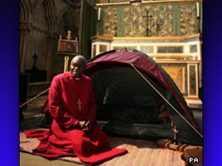 Перед алтарем храма англиканский прелат установил палатку, в которой собирается жить семь дней в строгом посте – он не будет есть твердую пищу, употребляя только воду. По словам доктора Сентаму, цель его акции – призыв к отказу от насилия и миру на Ближнем Востоке. Он будет жить в палатке в знак солидарности с мирными жителями Израиля и Ливана, которые из-за конфликта вынуждены жить без крыши над головой и нормального питания. Изначально архиепископ собирался провести эту неделю с женой и детьми в Зальцбурге.